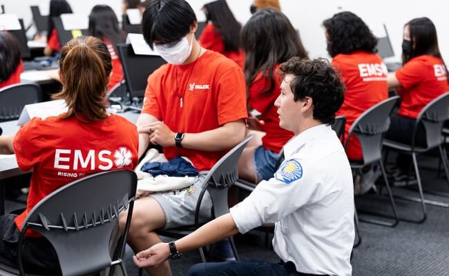 Students also went on a ride-along job shadowing experience where they watched first responders answering emergencies in real time, networked with EMTs, and witnessed firefighters, local police officers, and emergency room staff provide patients with life-saving emergency medical services.