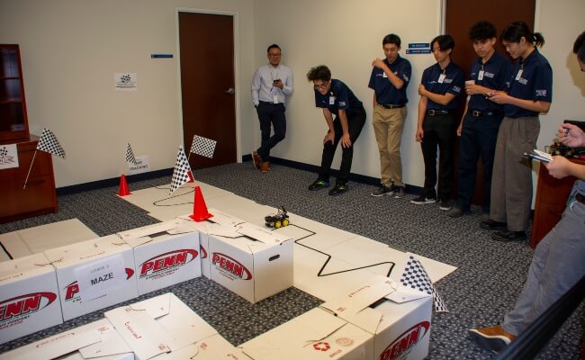The room was filled with nervous excitement and tangible anticipation as each L3Harris intern set their respective robot car on the obstacle course to approach and navigate various challenges.